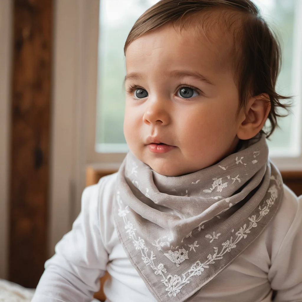 Нежные руки с любовью сшивают детский слюнявчик-бандану из мягкой хлопковой ткани, передавая теплоту и уникальность ручной работы, символизирующей заботу о малыше и уют домашнего творчества.